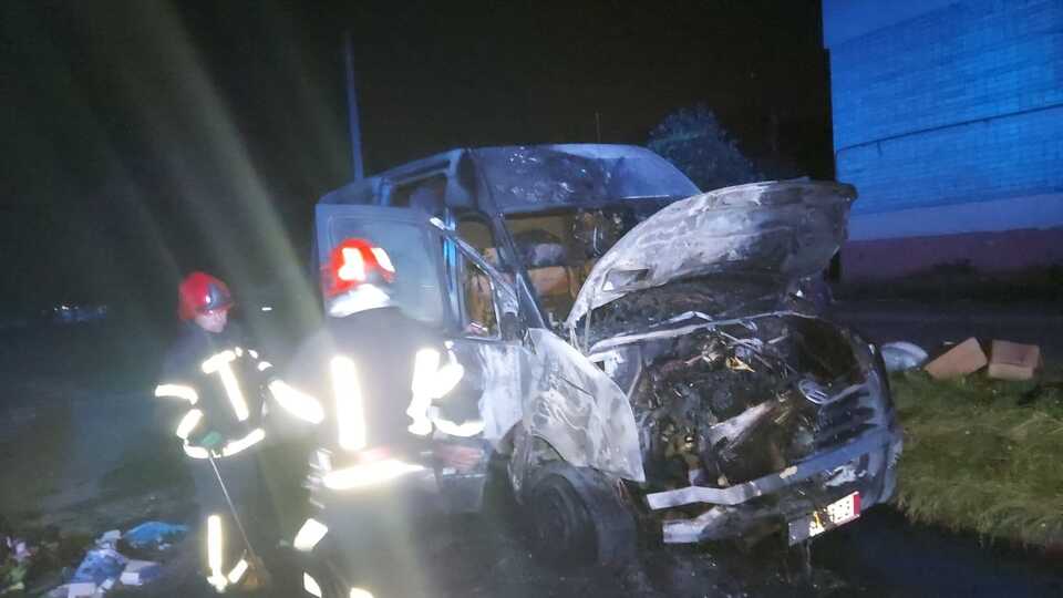 В цю ж ніч спалили машину військовому за якихось декілька сотень метрів від цього мікроавтобуса. Ще один волонтерський бус спалили 3 дні тому на Виговського.