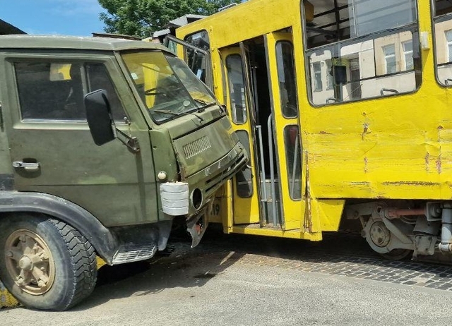 Вантажівка не розминулася із трамваєм №7 і відбулося зіткнення.