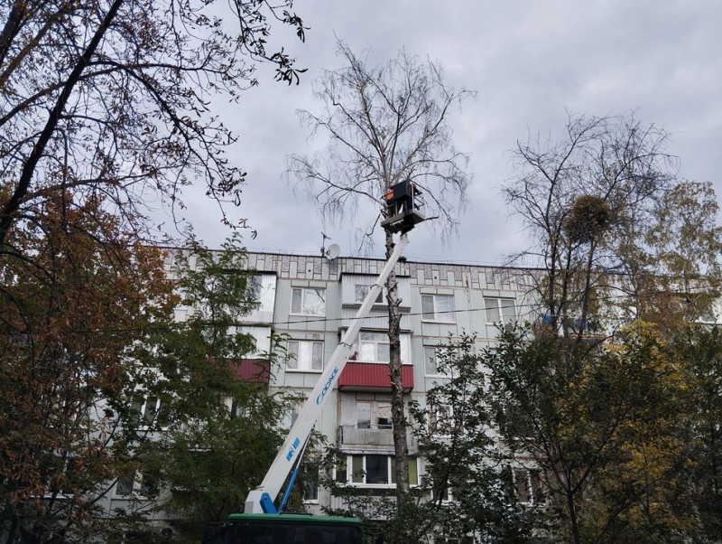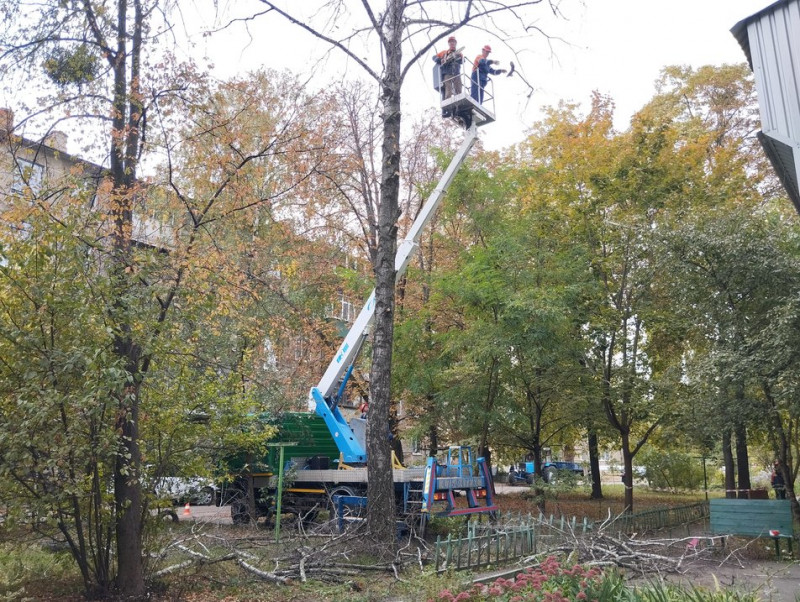 "Видаляємо суху березу, видаляємо черемху суху і обрізаємо верхівку суху на березі. У нас вишка дістає 18 метрів. От ви бачили, що ми дістали до межі. Оцій березі не менше 50 років. Думаю, що черемха, може, трішки молодша. Дерева свій баланс вже виробили. Не всі громадяни адекватно на це реагують. Є люди, що розуміють. Ось викликали, кажуть, ще там обріжте, там, а є таке, що вперлося: «Я ту деревину садив»", — прокоментував працівник КП "Декоративні культури" Віктор Міщенко.