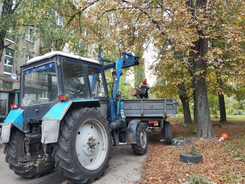 Комунальники вивозять спиляні дерева. Суспільне Полтава