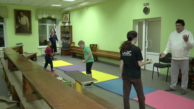 В одній з аудиторій центру культури та дозвілля у Полтаві роблять розминку вихованці гуртка "Академія клоунів". Далі переходять до акробатики та жонглювання. 8-річний Іван Ільчишин на заняття приходив удруге.