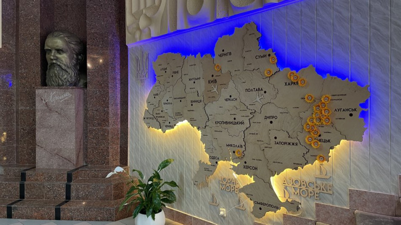 Розмір карти – 2 на 3 метри. За словами Юліани Линник, на мапі нині 23 соняха. Місце облаштували для того, щоб вшановувати полеглих захисників України – випускників та викладачів освітнього закладу.