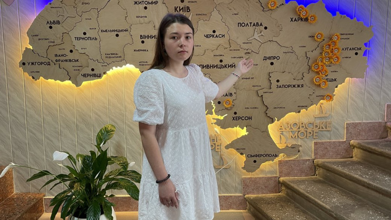 Студентка педуніверситету показує карту для вшанування бійців. Суспільне Полтава