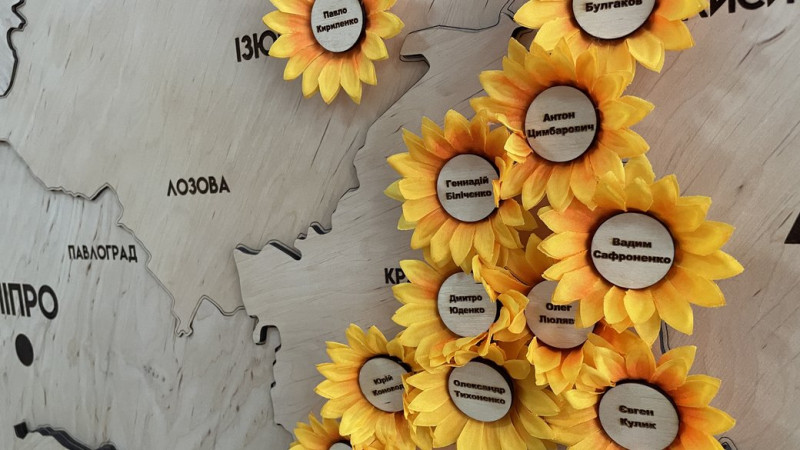 "Серед наших студентів був і Юліан Матвійчук, і Дмитро Юденко, і Євген Перепелиця, який загинув у "Десні" (військова частина Збройних сил України – ред.), і, власне, "Єті" – бойовий медик. Ми знайшли, хто виготовляє таку карту, потім вже соняхи ми робили всі разом".