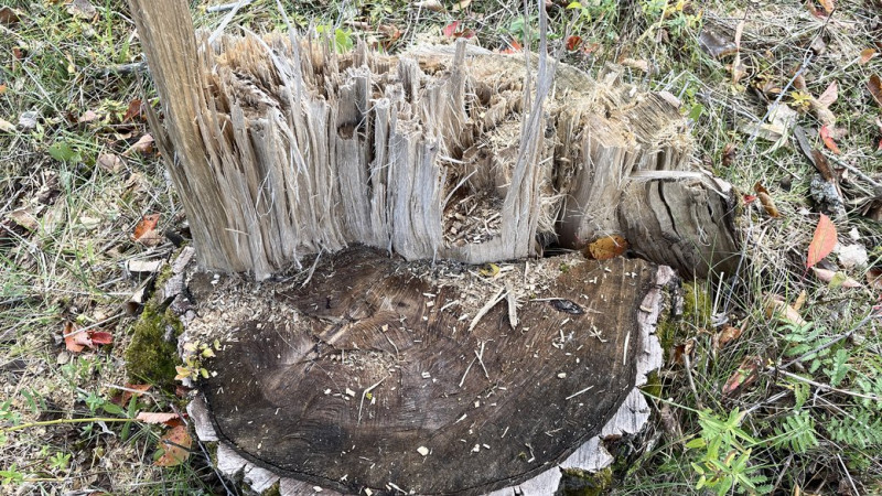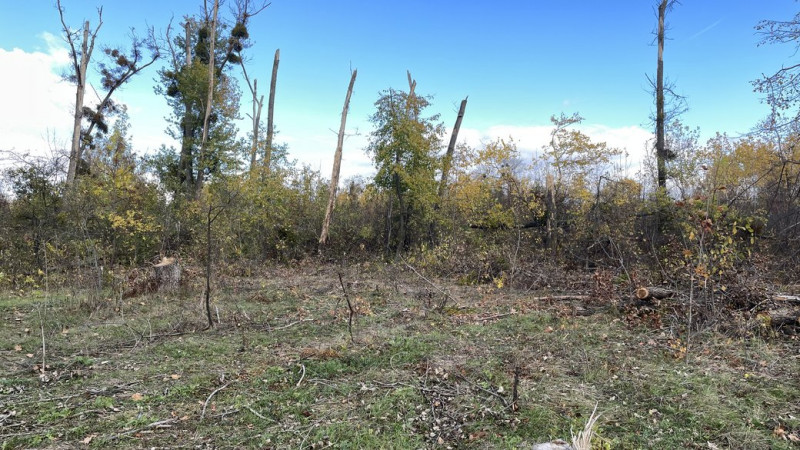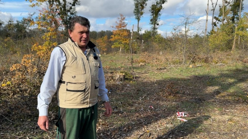 "Місяців півтора тому тут почали пиляти ліс. Народ відразу шум підняв, поліція приїжджала разів шість чи вісім. На деревах омела, подивіться. Дуже інфіковані, буквально 5-10 років і вони сухі будуть, але ж їх можна було б обрізати п’ять-шість метрів від землі. Люди незадоволені тим, що отут залишається пустеля, і ніхто не вірить, що тут навесні посадять ліс", — розповів місцевий житель Андрій Кальченко.