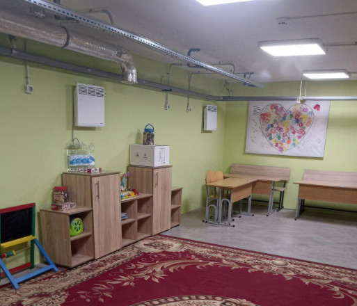 В укритті є навчальні кімнати, зона відпочинку, душова та роздягальня. Простір оснащено сучасною системою вентиляції, настінними електричними конвекторами.