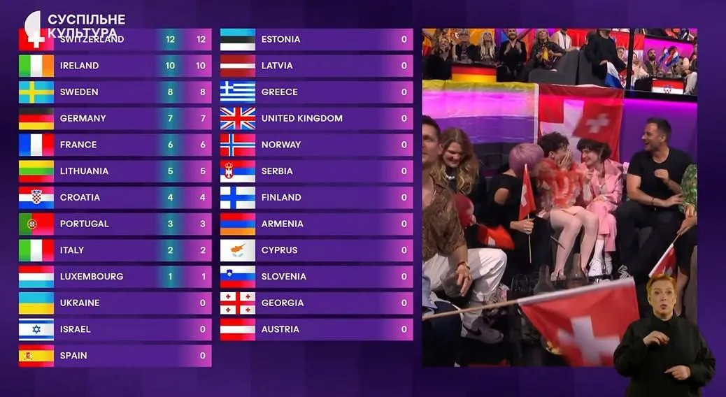 01:45 – Оголошено переможця Євробачення 2024. Ним став Nemo з Швейцарії!