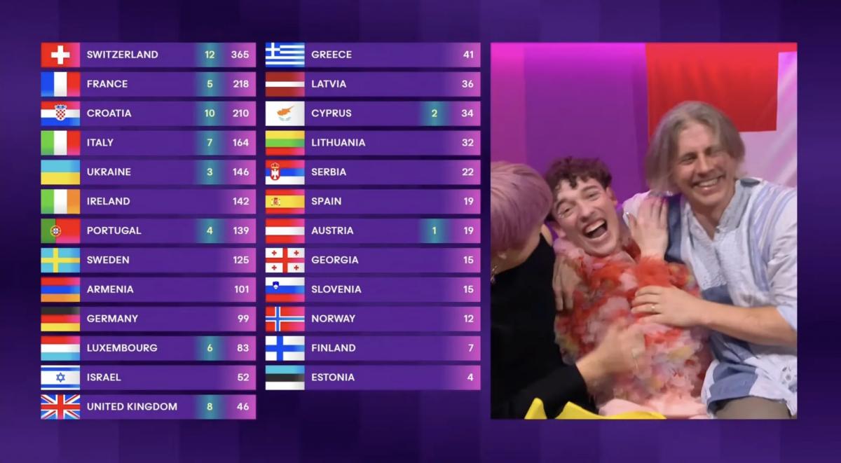 00:58 – Поки майже всі журі віддають дванадцятки Швейцарії.