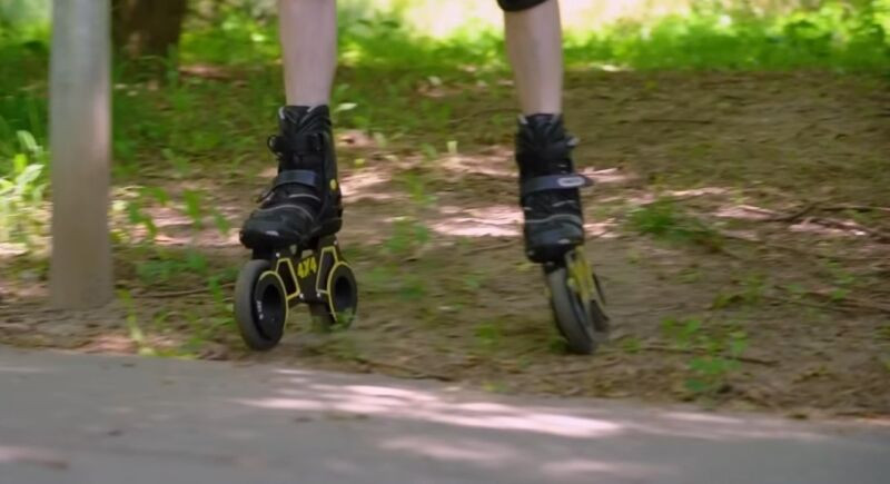 Умілець проїхався на своїх роликових ковзанах містом. Видно, що вони чудово справляються не тільки з їздою по тротуару, а й із ґрунтом. Це робить їх дуже практичним транспортом.