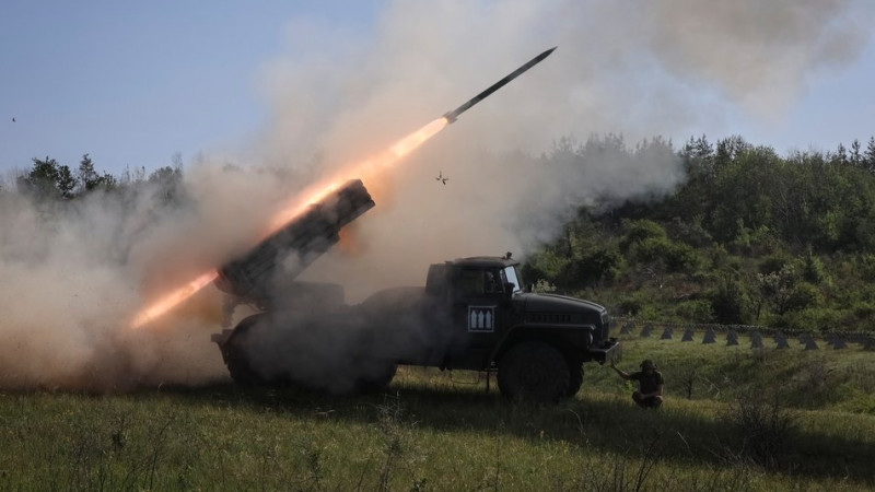 Українські військовослужбовці 30-ї окремої механізованої бригади імені князя Костянтина Острозького ЗСУ ведуть вогонь з реактивної системи залпового вогню БМ-21 “Град” по російських військах в Донецькій області, Україна, 3 червня 2025 року. REUTERS/Vyacheslav Madiyevskyy