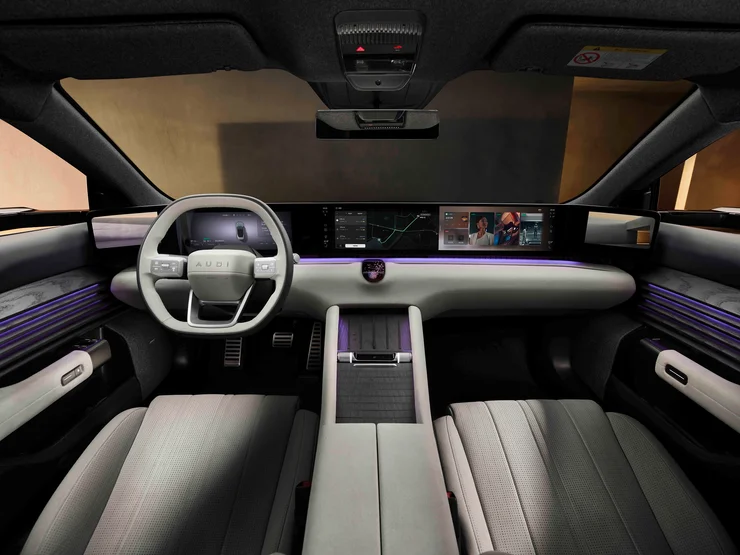 Новий Audi E5 Sportback сягає 4,9 м завдовжки та вирізняється обтічним дизайном. У салоні на всю ширину передньої панелі розтягнуто великий дисплей. Серед опцій моделі – камери замість дзеркал і система напівавтономного руху.