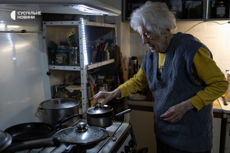 Прабабуся Афіни допомагає готувати. Все, що можна приготувати чи нагріти на газу — робиться саме так. Електроенергію економлять Суспільне Новини/Іван Антипенко