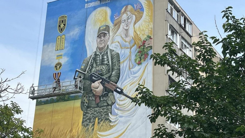 Старший лейтенант Олександр Білік на позивний “Топаз” відтепер зображений на стіні вінницької багатоповерхівки. Фото: armyinform
