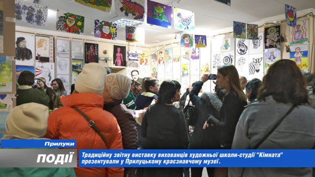 Традиційну звітну виставка вихованців арт-студії «Кімната» презентували у Прилуцькому краєзнавчому музеї. Всі роботи яскраві і унікальні, а ще їх так багато, що довелося вішати на навіть на стелю.
